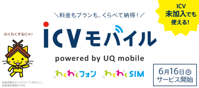 出雲ケーブルビジョン株式会社 (本社: 島根県出雲市、代表取締役: 今岡 余一良、以下「ICV」) は、KDDIバリューイネイブラー株式会社(本社:東京都新宿区、代表取締役社長:菱岡 弘)のモバイルサービス基盤を活用し、2015年6月16日より、auの4G LTEに対応したMVNOサービス「ICVモバイル」の提供を開始します。