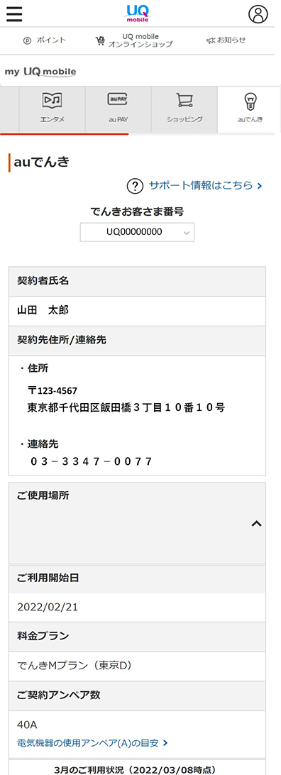 auでんきサービスの各種ご契約内容はMy UQ mobile IDをお持ちのお客さまはMy UQ mobileから、お持ちでないお客さまはMy auからご確認いただけます。