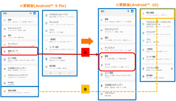 <Android 10のバージョンアップにおける主な機能追加・変更内容について>