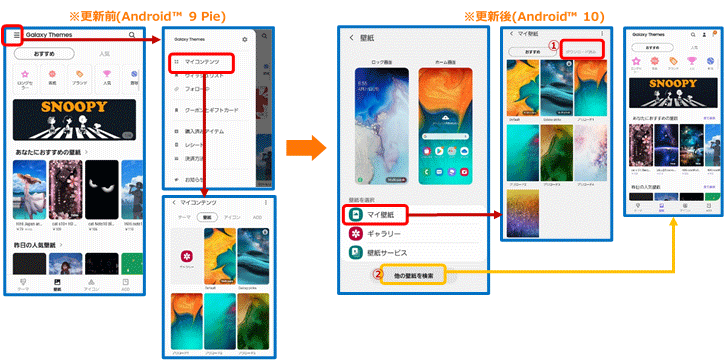 - [②] 「他の壁紙を検索」が追加され、本機能からGalaxy Themeへ移動するようになります。