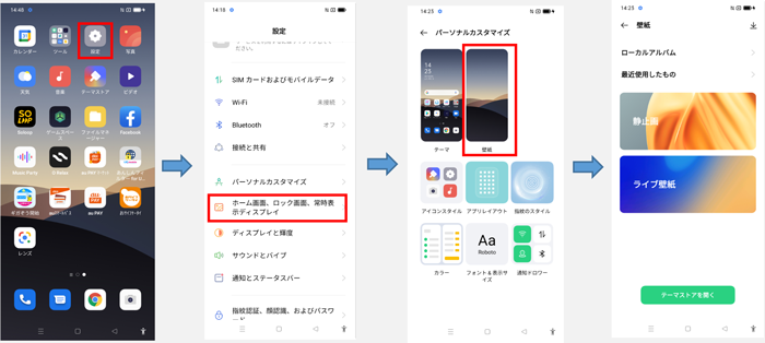 「設定」→「パーソナルカスタマイズ」→「壁紙」