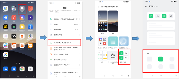 「設定」→「パーソナルカスタマイズ」→「通知ドロワー」