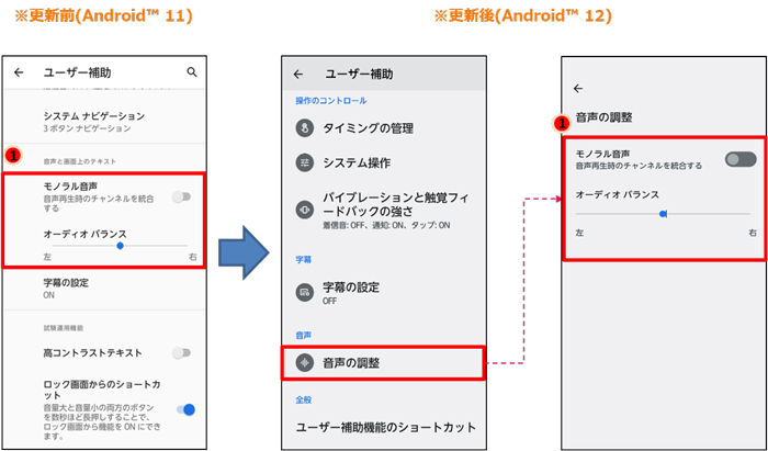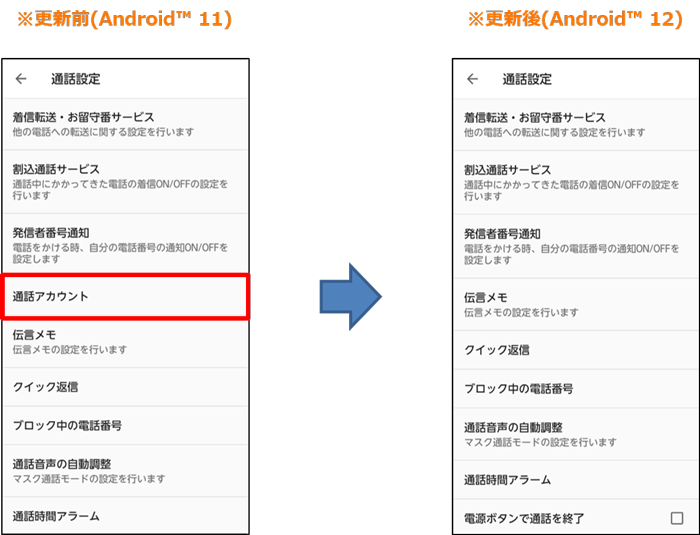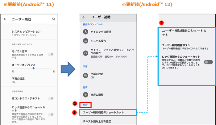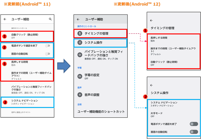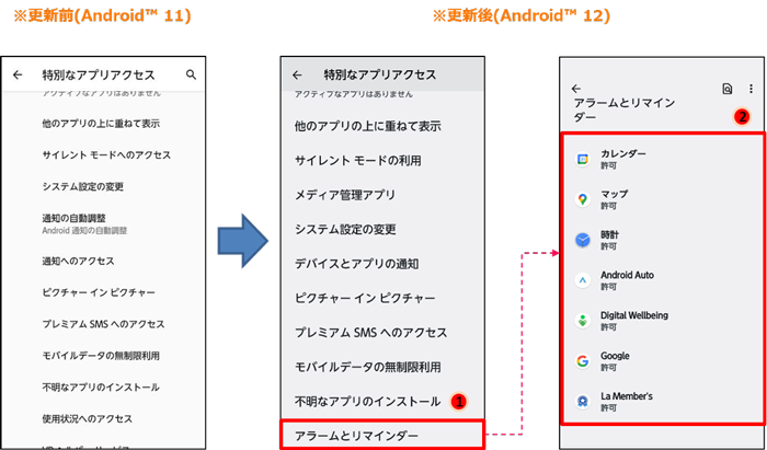 - Android™ 11で動作しているアプリケーションのAndroid™ 12上での動作は保証できません。アプリケーションの対応OSなどをご確認の上、OSアップデートを実施してください。
