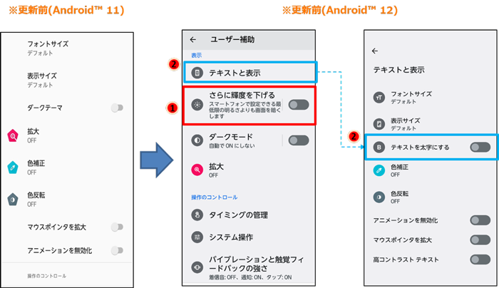 テキストを太字にすることができるようになります。- □ 「さらに輝度を下げる」が追加されます(