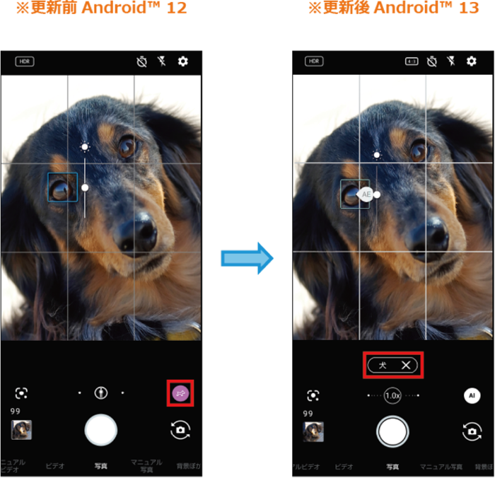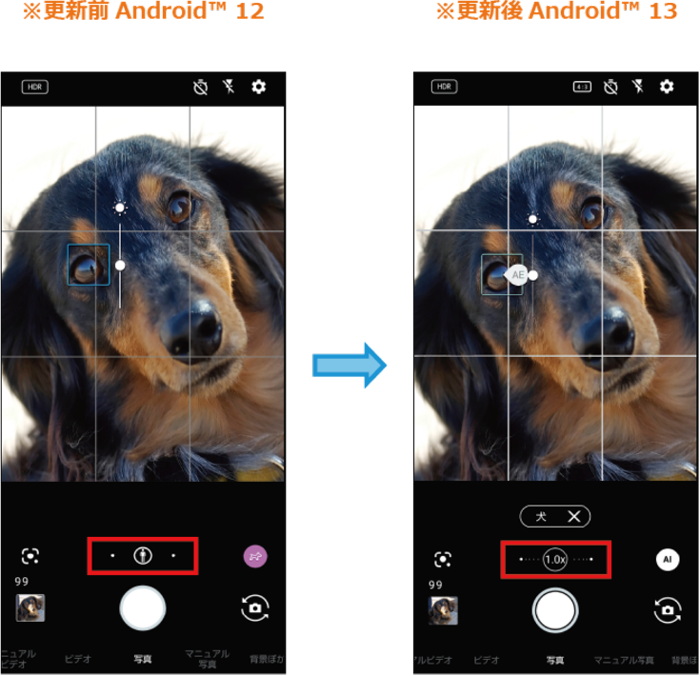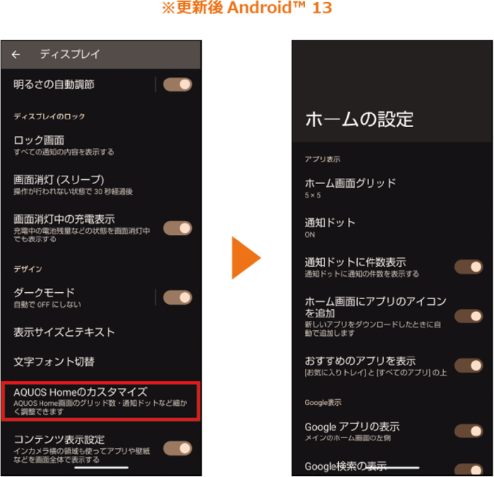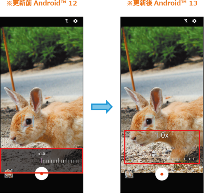 - OSアップデートにより、お客さまのスマートフォンはAndroid 13に更新され、画面操作や機能が変更されます。