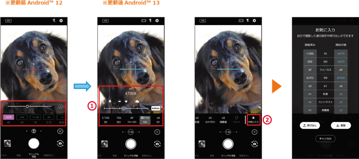 - マニュアル撮影画面の操作方法が変更になります。「①」