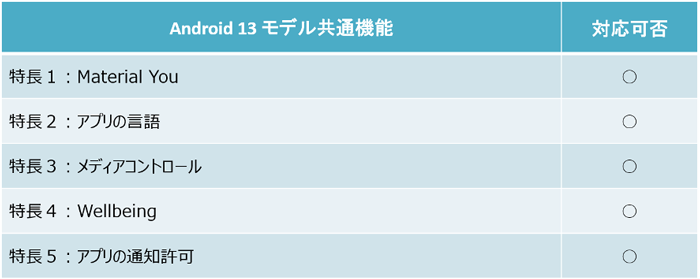 <Android 13のバージョンアップにおける主な機能追加・変更内容について>