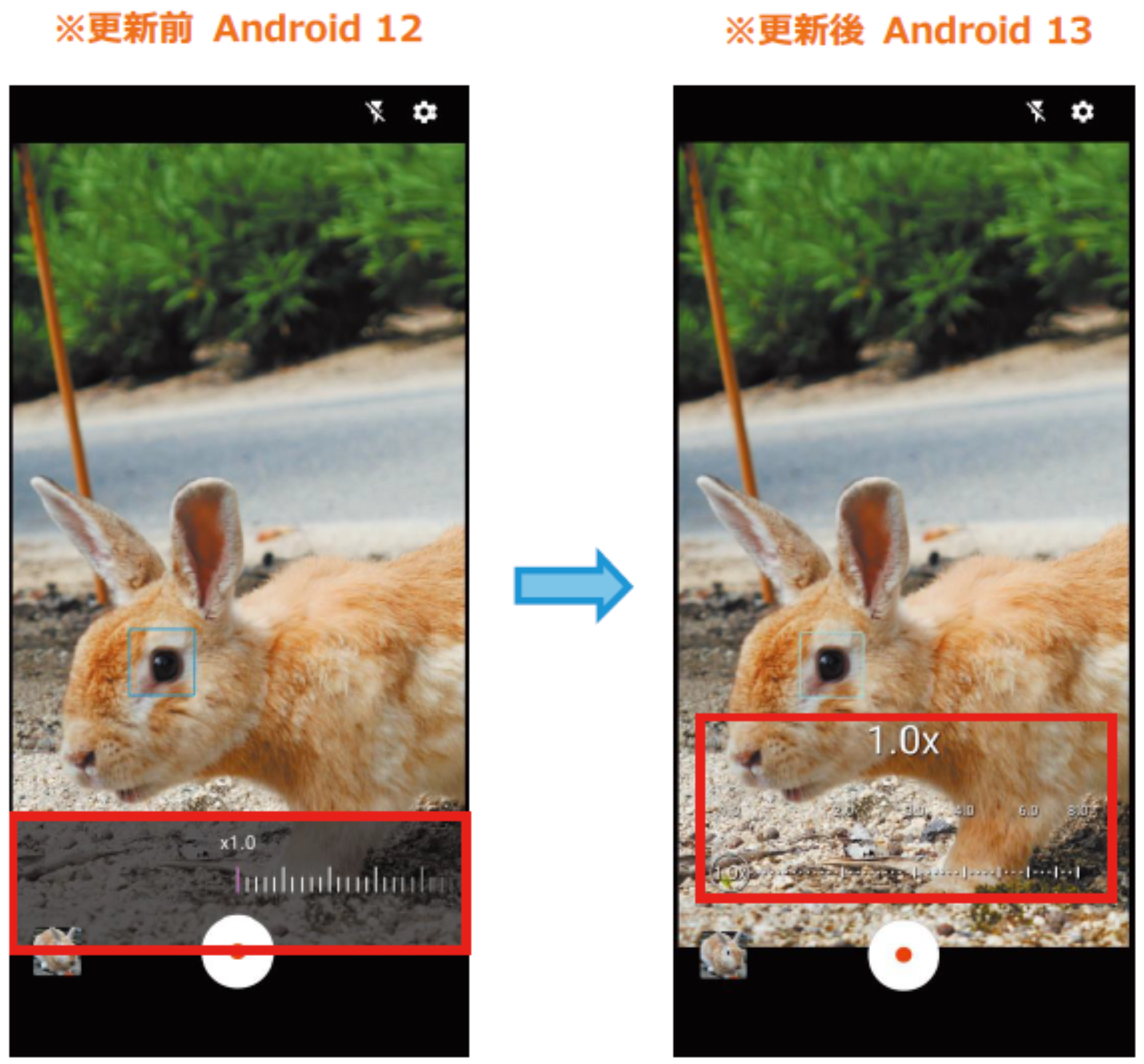 ○ 「カメラ」アプリ変更:ズーム操作(1) [図4]