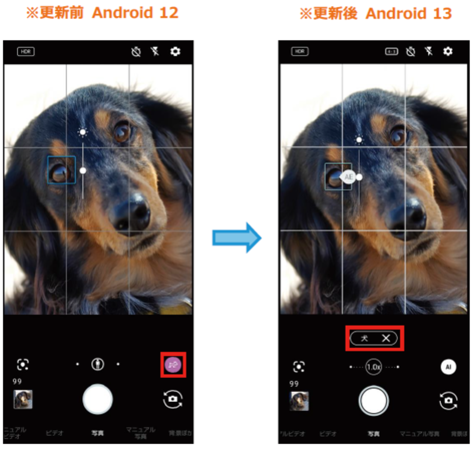 ○ 「カメラ」アプリ変更:AI認識 [図8]