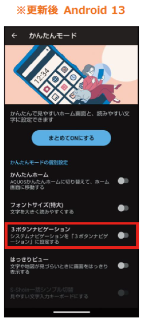 - 本製品の操作方法を3ボタンナビゲーションに変更する項目が追加されます。