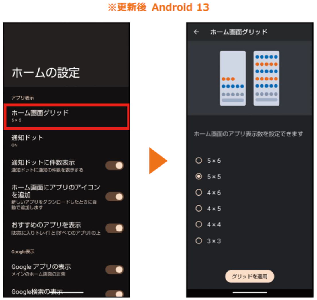 - ホーム画面・アプリ一覧画面に表示するアプリアイコンの数を設定する機能が追加されます。