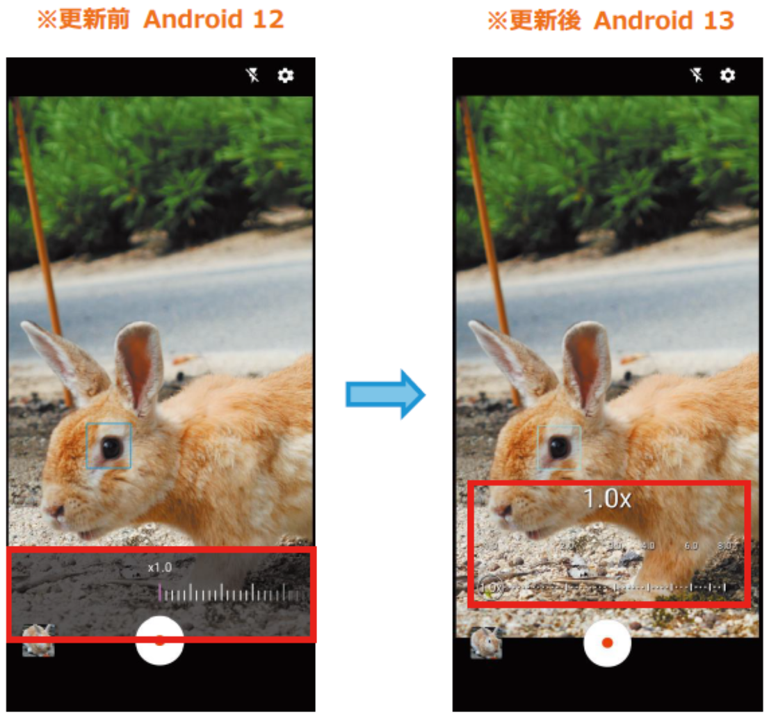 ○ 「カメラ」アプリ変更:ズーム操作(1) [図4]