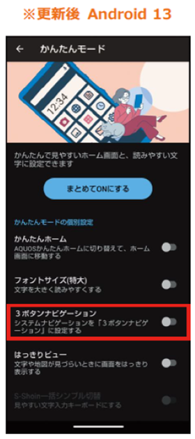 - 本製品の操作方法を3ボタンナビゲーションに変更する項目が追加されます。