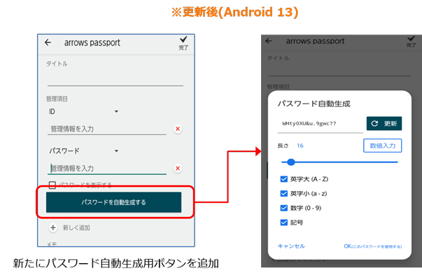- 誰でも簡単にパスワードを作成できるよう、データ登録画面にパスワードの自動生成機能が追加されます。