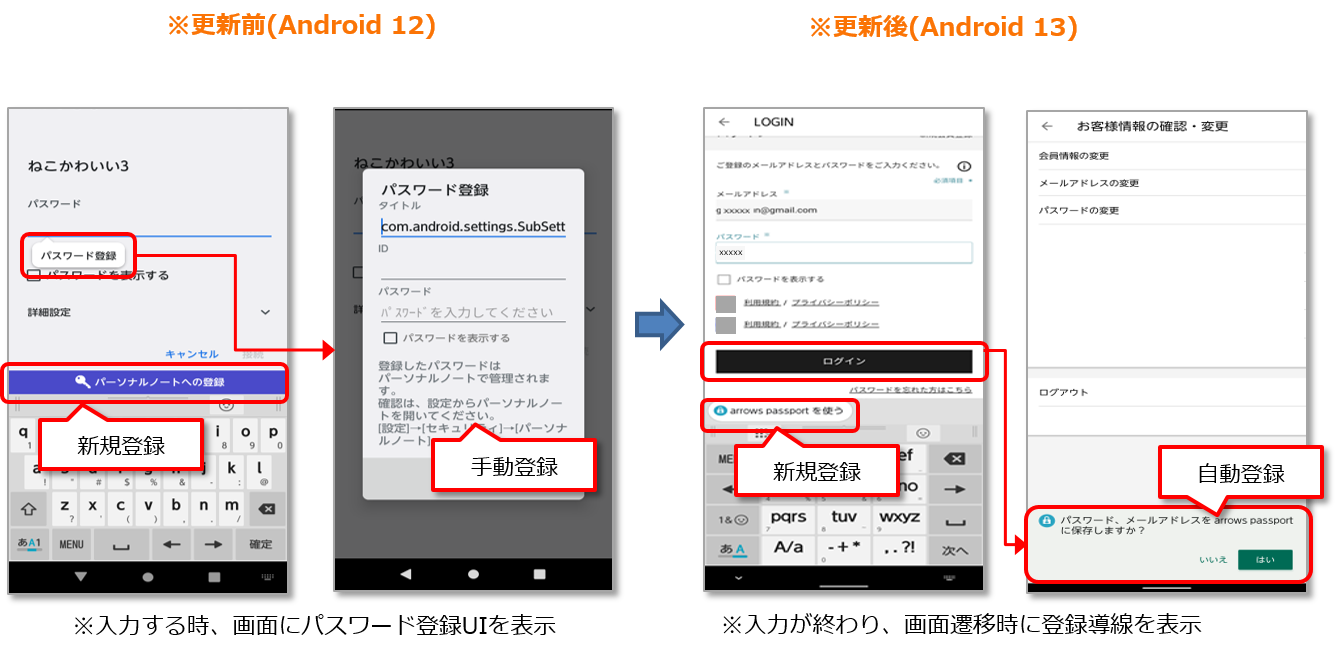 - パスワード入力時のパスワード登録UIが、よりわかりやすいように変更されます。
