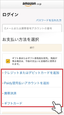 お支払方法を設定。いずれかのお支払方法の設定をしてください。携帯決済もご選択可能です。