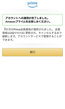 Amazonサイトでのご利用登録が完了した日から3カ月間特典が適用されます。ご利用登録時に、すでに「Amazonプライム」会員のお客さまは、会員期間の終了日が3カ月間延長されます。