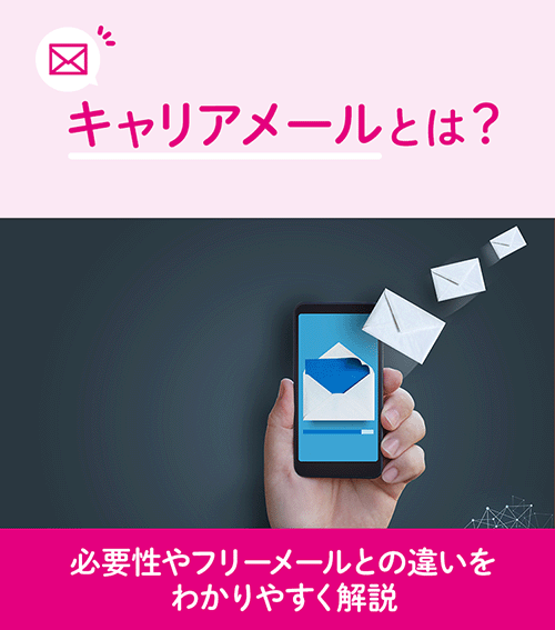 キャリアメールとは、通信事業者が発行している固有のドメインを用いたメールアドレスです。セキュリティの信頼度が高く、初期設定や手続きがしやすいなどのメリットがありますが、通信事業者を解約、あるいは乗り換えると利用できなくなります。