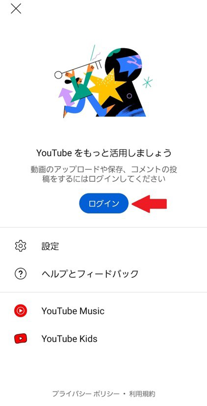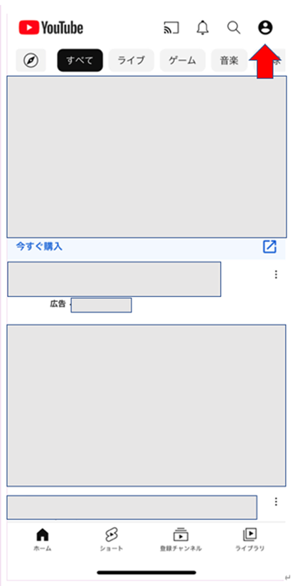 まずは、スマホのYouTubeアプリを起動してログインします。YouTubeにログインする手順は以下の通りです。