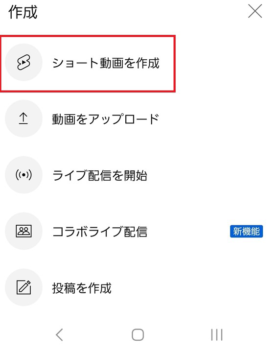 YouTubeアプリの機能でYouTubeショート動画を作る手順を解説します。
