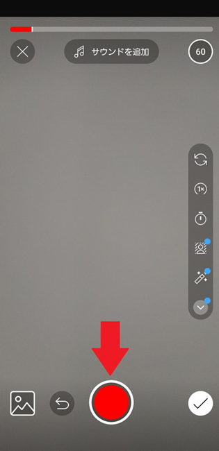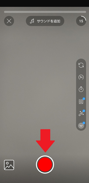 1.画面右上のアイコンで秒数を決めて画面中央の撮影ボタンをタップすると、ショート動画の撮影が開始します。