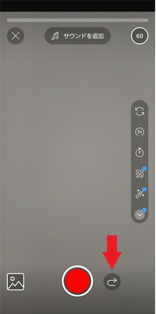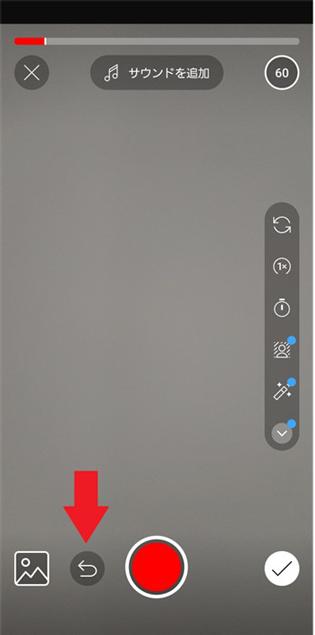 5.「元に戻すアイコン」で削除してしまった動画を元に戻したい場合には、撮影ボタン横にある「やり直しアイコン」をタップすると良いです。