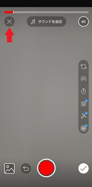6.ショート動画の撮影を中止したい場合は、画面左上の「閉じるアイコン」をタップします。