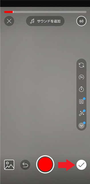 「完了アイコン」をタップすると、撮影したショート動画を編集できます。