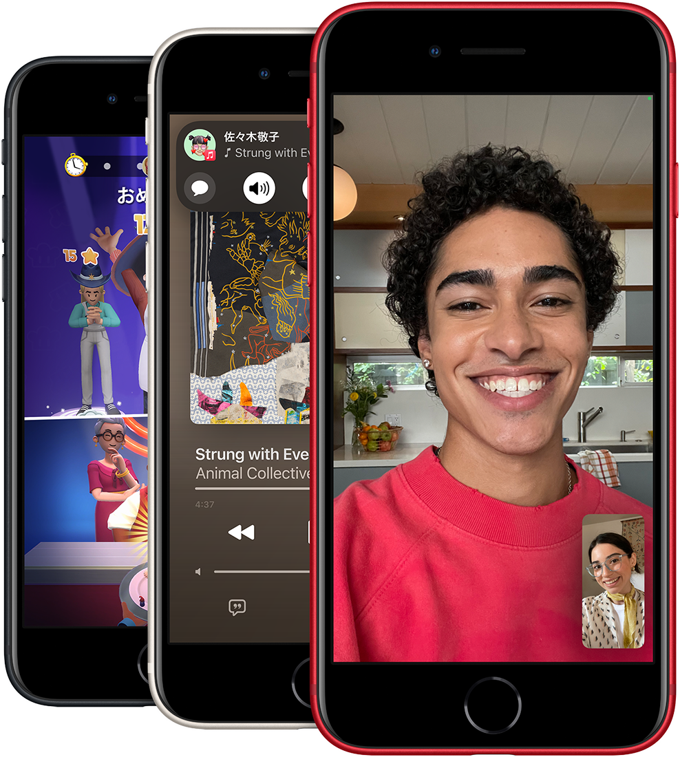 携帯電話/ワイヤレス通信方式:データプランが必要です。 5GとLTEは特定の国の特定の通信事業者で利用できます。速度は論理上のスループットにもとづくもので、使用する場所の条件および通信事業者によって変わります。5GおよびLTE対応の詳細については通信事業者にお問い合わせください。apple.com/jp/iphone/cellularもあわせてご覧ください。
