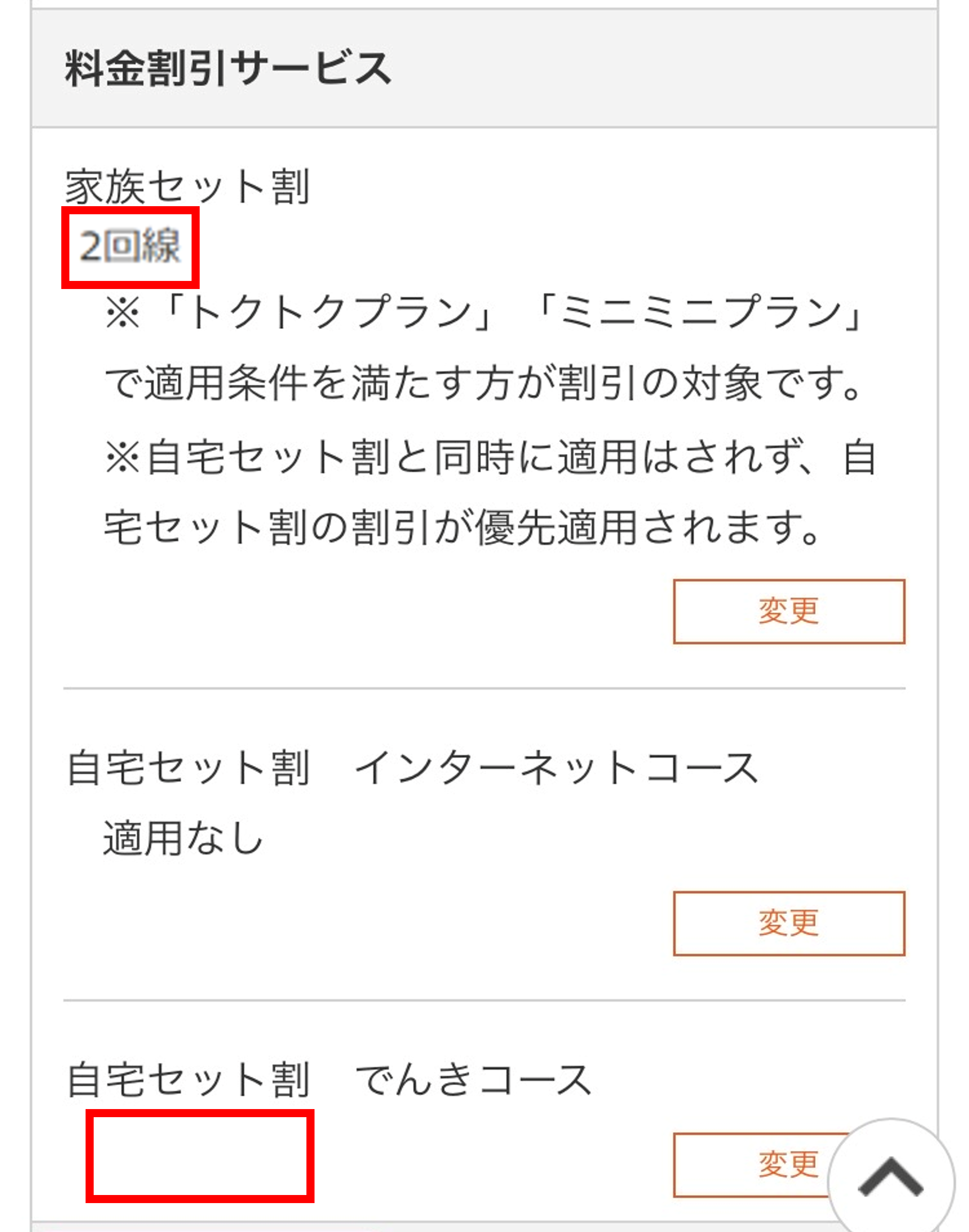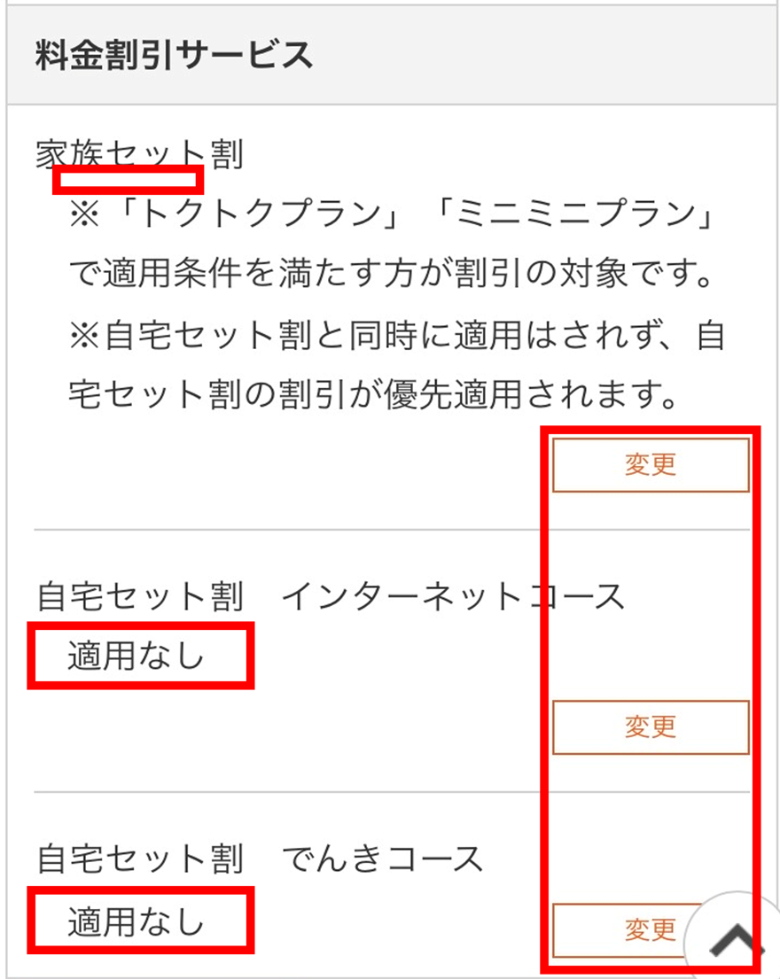 家族セット割/自宅セット割グループ加入状況の確認