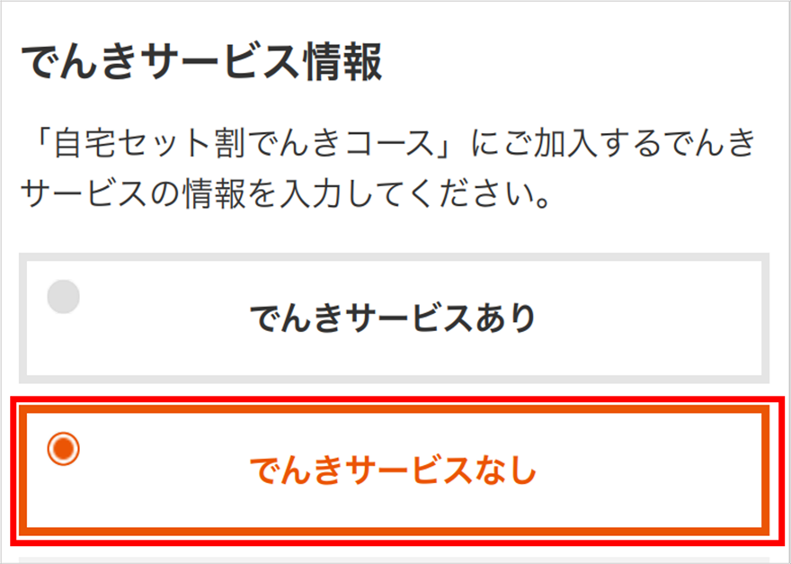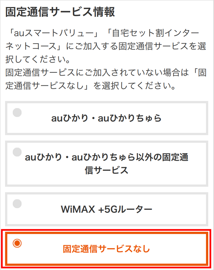 「固定通信サービスなし」を選択する。