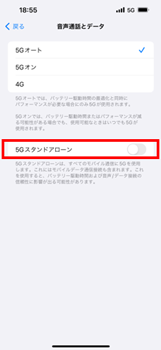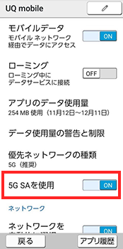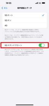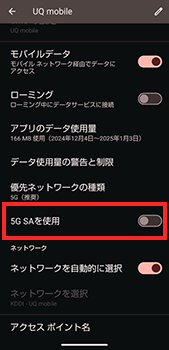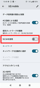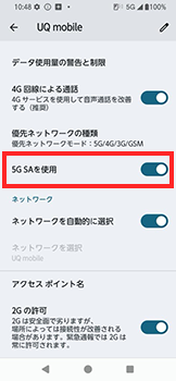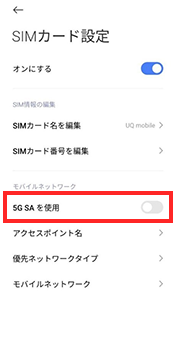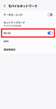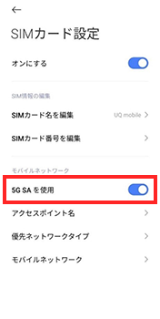 「設定アプリ」の「5G SAスイッチ」をオンに設定してください。