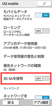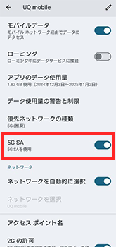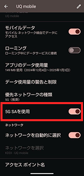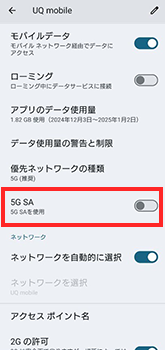 5G SA対応端末をご利用中の方は、5G SAをご利用いただくにあたり、5G SA契約への変更(回線種別「5G SA」への契約内容変更)と、端末の設定が必要となりますので、後述の「5G SAのご利用準備」をご確認ください。