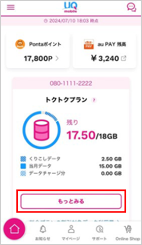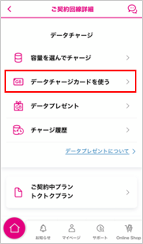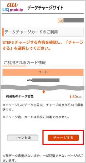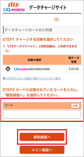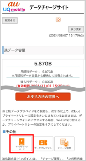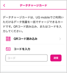 「My UQ mobileアプリ」または「データチャージサイト」からお手続きいただけます。