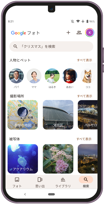 友人やペット、料理や領収書、バス停の時刻表など幅広いカテゴリも自動で整理され、検索することができるようになります。