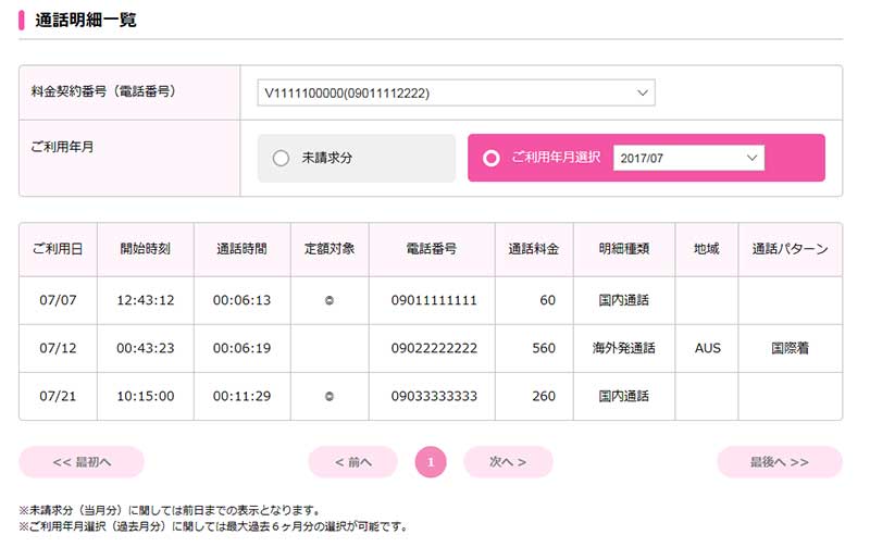 2024年4月から6月にかけてシステム切り替えを実施いたしました。今後は上記に記載の通話明細サービスをご利用いただきますようお願いいたします。