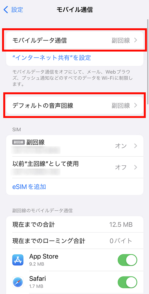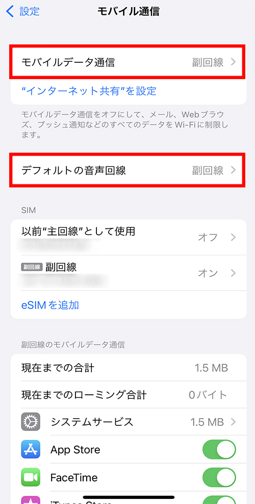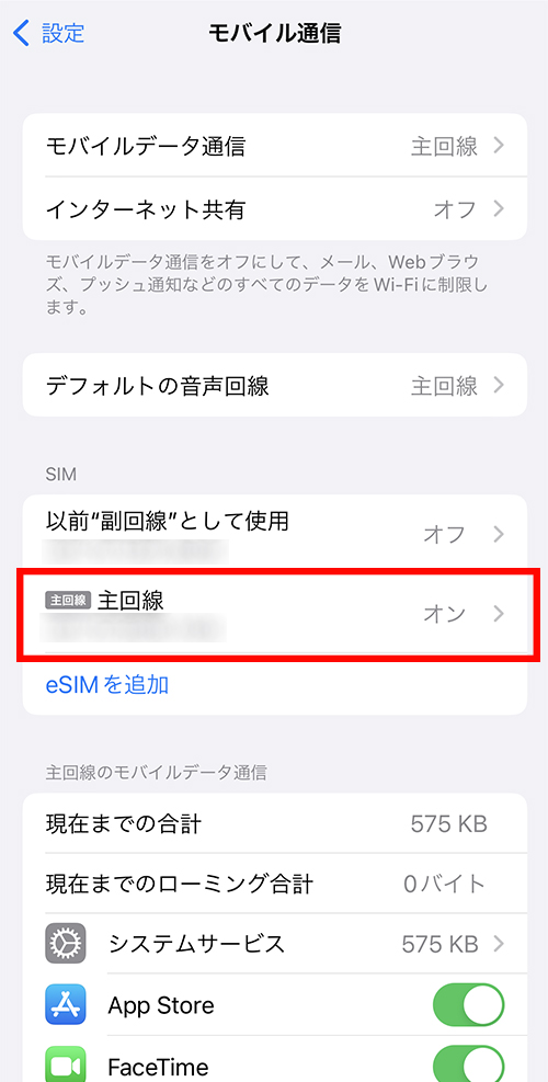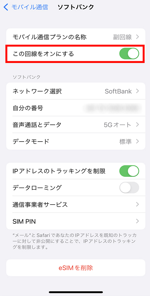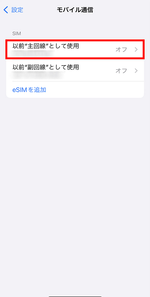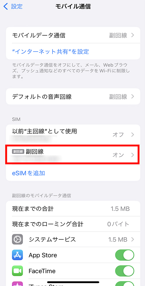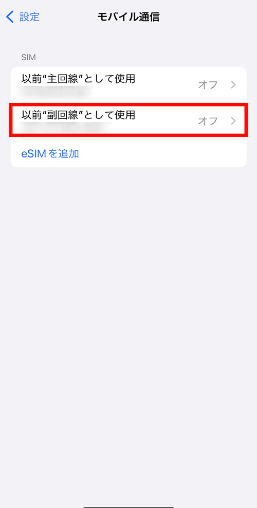 | 副回線 | 副回線(eSIM) | 利用中 |