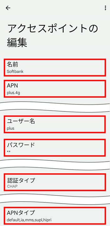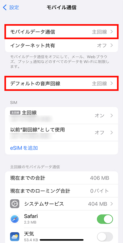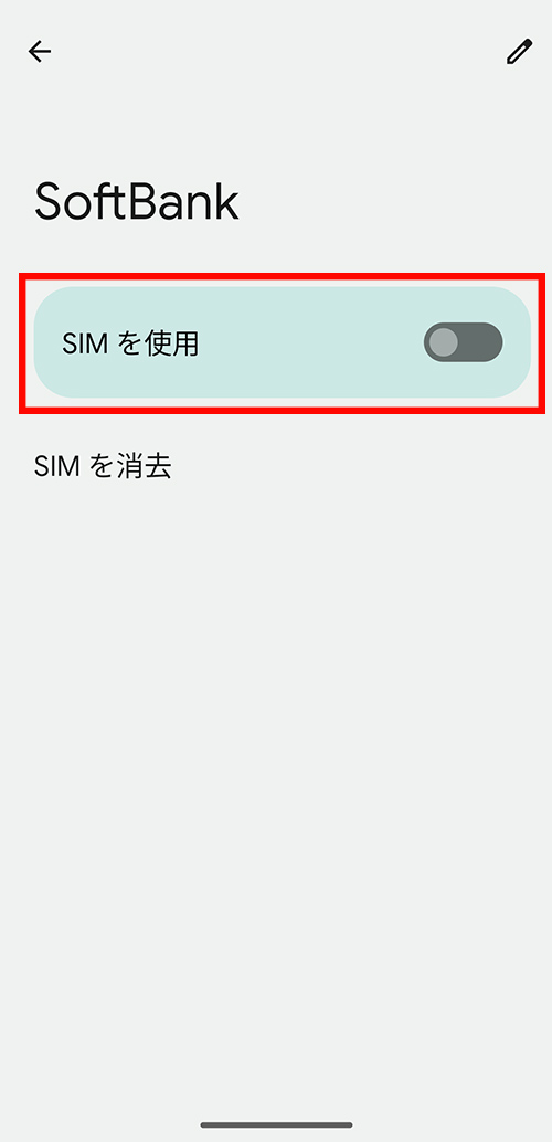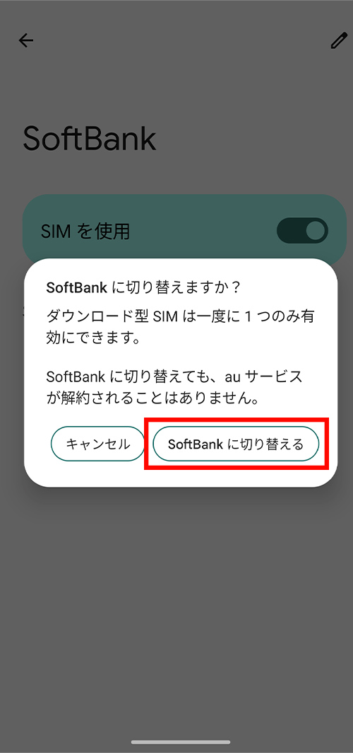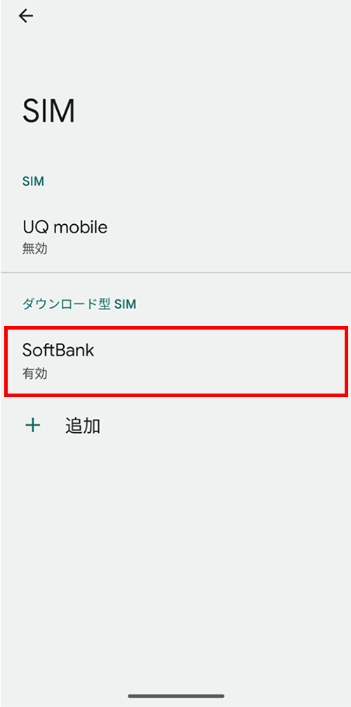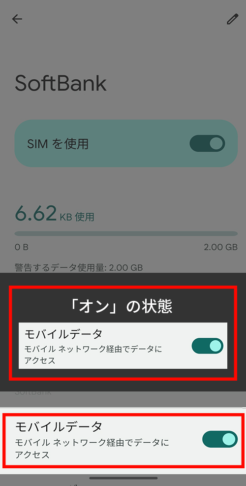 ②Softbankが「有効/モバイルデータ、通話、SMSのデフォルト」