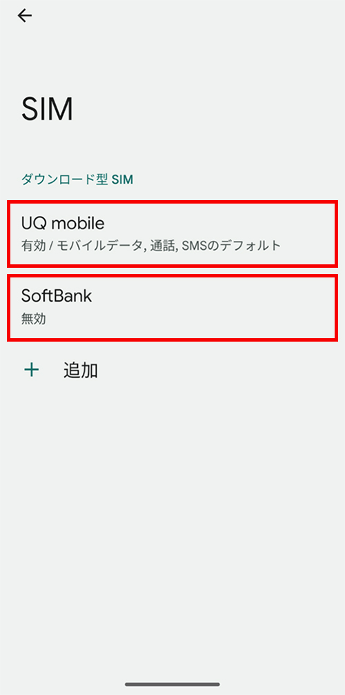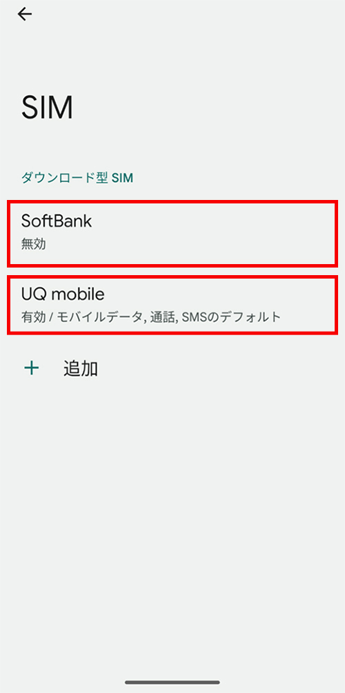 UQ mobile回線(SIMカード)を利用している端末で、副回線(eSIM)に切り替える場合