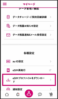 【1】マイページより、「eSIMプロファイルをダウンロード」をタップ