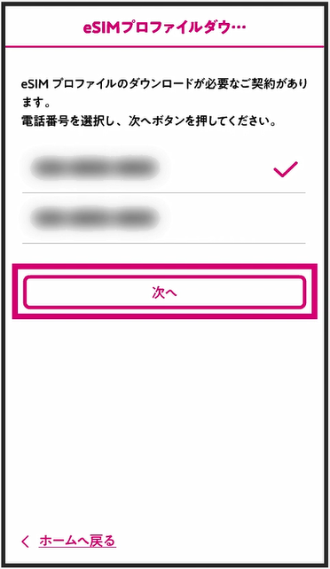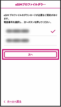 ダウンロードしたい電話番号を選択いただき、「次へ」をタップ
