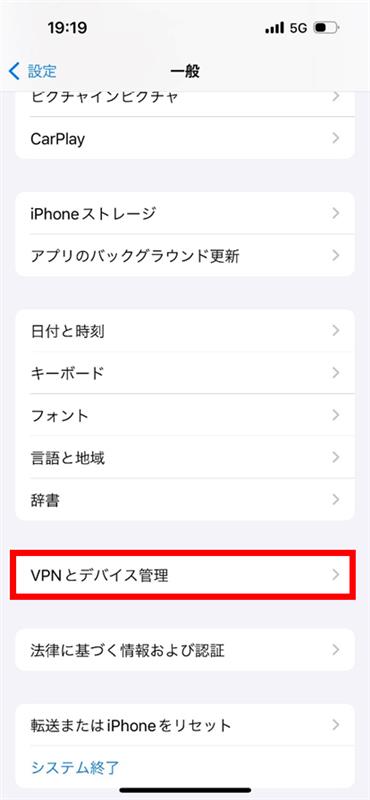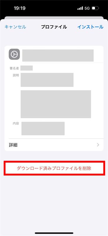 【5】「ダウンロード済みプロファイルを削除」をタップ