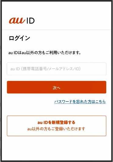 | 機種変更 | ・au ID/パスワード ・携帯電話番号  |