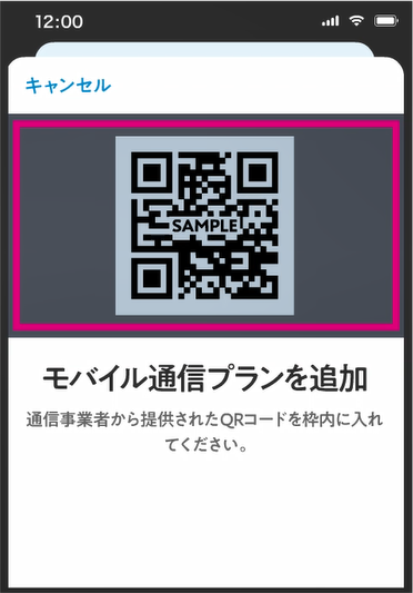 【7】先ほど取得したeSIMプロファイルダウンロード用のQRコードを読み取る