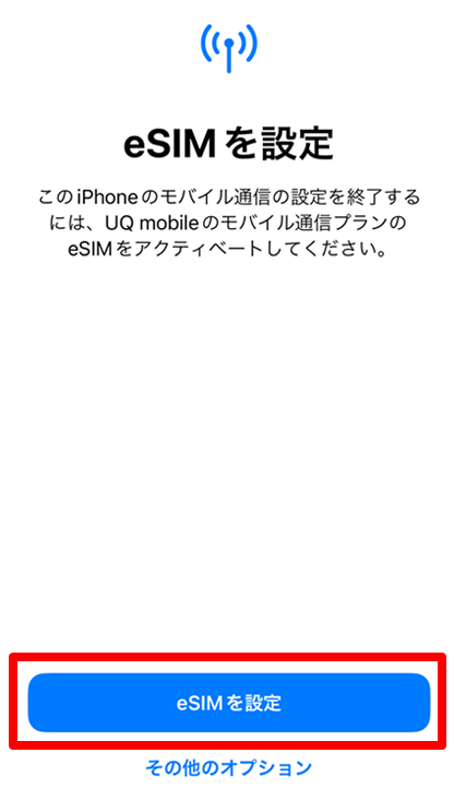 eSIMの初期設定には、予めWi-Fi ネットワークに接続する必要があります。Wi-Fi環境をご準備のうえ、手続きをお願い致します。