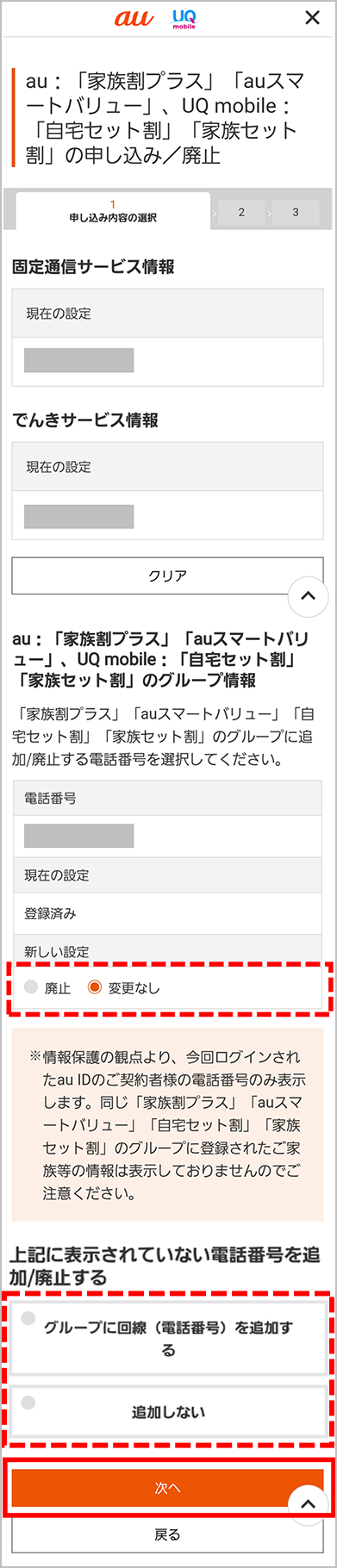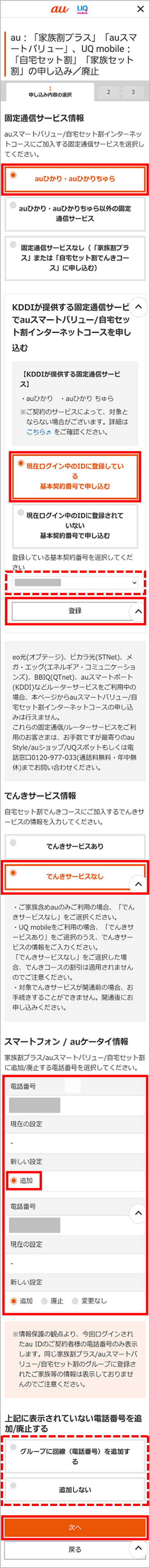 【auひかり・auひかりちゅらでau IDに登録している基本契約番号で申し込む場合】
