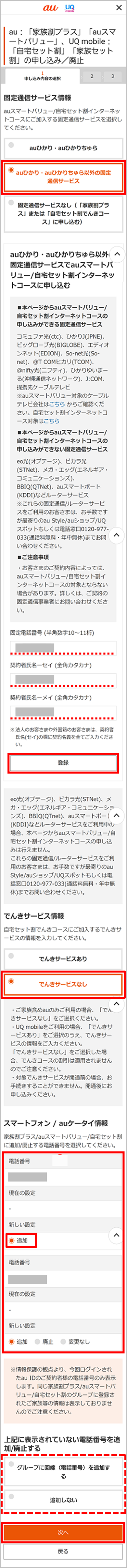 【auひかり・auひかりちゅら以外の固定通信サービスで申し込む場合】