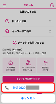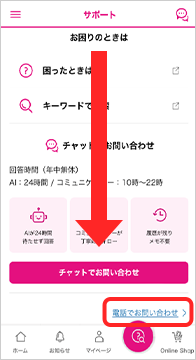 以下ボタンをタップして、スクロールし、「チャットでお問い合わせ」下の「電話でお問い合わせ」をタップするとご利用いただけます。