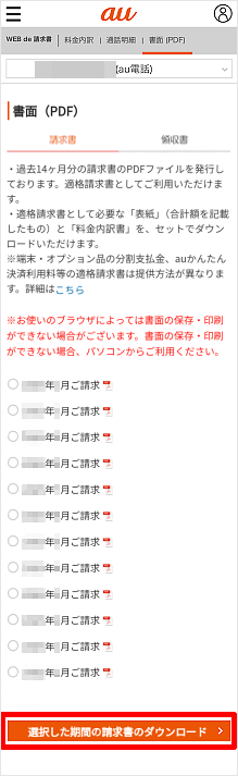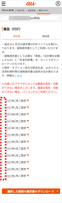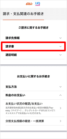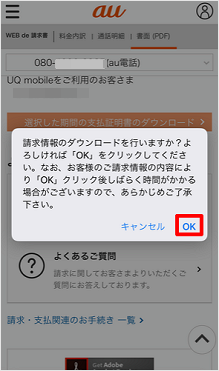 過去14カ月分の請求書を、My UQ mobile(Web)の「WEB de 請求書」からPDF形式でダウンロードできます。