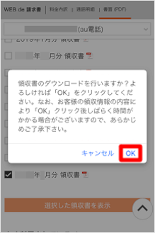 [OK]をタップすると、領収書がPDF形式でダウンロードされます。